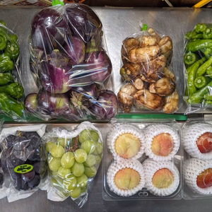 ハクサイ、キャベツ、ダイコン、ニンニク、キウイ、リンゴ、洋ナシ