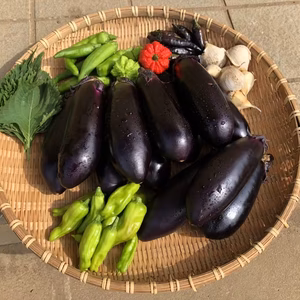 注文受付停止中篠塚政嗣注文から2~7日で発送夏が過ぎても残暑厳しめなので!ナスをいっぱい食べませんかセット!茨城県結城市傷ナス(10〜12本)、紫とうがらし、ししとう、甘長、ニンニク、香辛子、大葉(すべて少々)〜880円 〜+送料910円