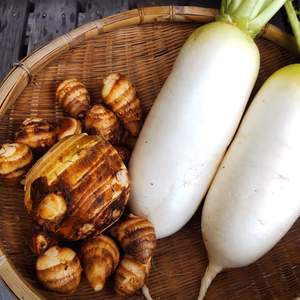 注文受付停止中草野 涼注文から当日~10日で発送【自然栽培】大根・里芋2点セット(源助大根2kg・幻の里芋 ウーハン1kg)奈良県吉野郡下北山村源助大根2kg(4~7本)/里芋 烏播(ウーハン)1kg〜1,232円 〜+送料1,400円