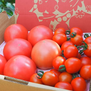 注文受付停止中大前 章注文から1~7日で発送1週間をこのトマトで乗り切ろう❗️秋の大玉トマト7玉とミニトマト✖️2箱セット岐阜県高山市大玉7玉入り、ミニトマト250g✖️2箱2,650円 +送料690円
