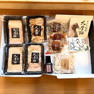 注文受付停止中松山欣浩注文から3~7日で発送【お中元・夏ギフト】大摩桜バラエティーセット(冷凍)鹿児島県南九州市鶏刺し4種各160g、自家製唐揚げモ300g×1p、辛みそ焼き・醤油たれ焼き各110g×1p7,280円 +送料1,600円