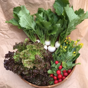 注文受付停止中亀崎敬介注文から1~7日で発送おいしい空気と水の味♪かめっこ元気色野菜セット♡岐阜県郡上市小カブ5~6個、リーフレタス1株、ラディッシュ130g、アスパラ菜150g1,100円 +送料910円