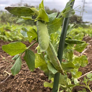 熟れ具合色々。茹でるだけで美味しい不耕起栽培のサヤエンドウ(絹サヤ)です。