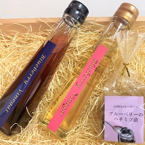 ブルーベリーで作った2色のビネガーとハチミツ漬のセット