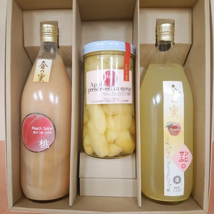 注文受付停止中高塩俊和注文から1~16日で発送【母の日ギフト】サンふじジュースとふじシロップ煮、桃ジュース合計3本セット!!長野県下伊那郡豊丘村ギフト・ジュース1L×2 シロップ煮×13,800円 +送料990円