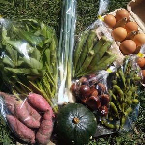 注文受付停止中定期木下和敏特定月に定期配送冬から春まで!【月1回 11月~5月常温便】平飼い有精卵と旬野菜セット便熊本県玉名市卵1パック(10個)と、野菜5~6品種です。2,700円 +送料1,380円
