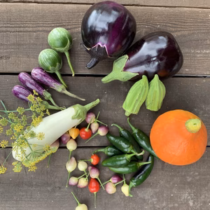 注文受付停止中三吉雅子注文から2~7日で発送レストラン野菜おまかせBOX家庭用サイズ☆ダビデの星は天高く長野県安曇野市1箱(ナス5種類、ダビデの星、コリンキー、フェンネルフラワー、唐辛子2種類)2,700円 +送料910円