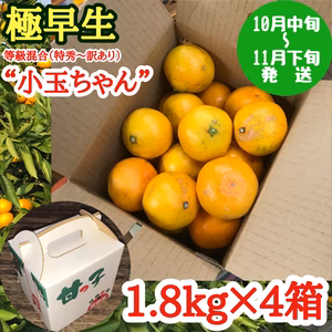 注文受付停止中ふるさと納税可南 富雄注文から2~7日で発送【極早生・有田みかん】“小玉ちゃん”/等級混合・約1.8kg×4箱【南泰園】和歌山県有田郡有田川町正味1.8kg×4箱(手さげ箱)4,500円 +送料931円