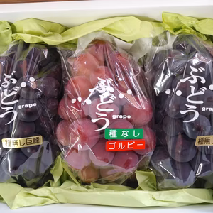 注文受付停止中小澤利秀注文から2~4日で発送シャインマスカット3房と巨峰を親とする希少Bkシー3房のご満悦セット‼️山梨県甲州市2キロ箱にシャインマスカット3房とBkシードレスを2房の合計5房をお入れいたします。〜6,588円 〜+送料910円