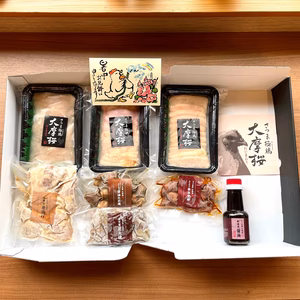 注文受付停止中松山欣浩注文から3~7日で発送【お中元・夏ギフト】☆化粧箱☆大摩桜 全種類まるごと食べ比べ(冷凍)鹿児島県南九州市鶏刺し5種各160g、唐揚げ300g、炭火焼き125g、110g×2、オリジナル醤油8,681円 +送料1,600円