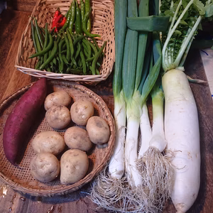 注文受付停止中市村満宏注文から1~3日で発送冬野菜セット 下仁田ネギ/ダイコン/ジャガイモ/サツマイモ/インゲン/トウガラシ埼玉県本庄市総重量3kg 下仁田ネギ/青首ダイコン/新ジャガイモ/サツマイモ/インゲン/トウガラシ(生)3,240円 +送料745円