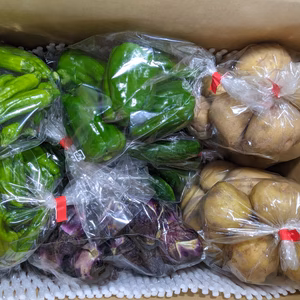 キュウリ、シシトウ、ジャガイモ、ピーマン、丸ナス
