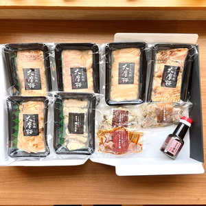 注文受付停止中松山欣浩注文から3~7日で発送【父の日ギフト】☆化粧箱☆大摩桜まるごと食べ比べ(冷凍)鹿児島県南九州市鶏刺し5種各160g、塩たたき70g、炭火焼き125g、110g×2、オリジナル醤油7,980円 +送料1,600円