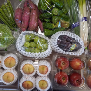 野菜類と果物の箱詰め