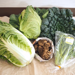 注文受付停止中平松真美注文から5~6日で発送ルッコラと冬野菜のセット。珍しく根菜入ってます。(計5袋)愛知県豊川市ルッコラ(80g)サラホ春菊(各150g)赤大根(一本)じゃがいも(3~4個)1,350円 +送料745円