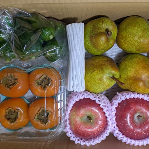 柿とりんごと洋梨とピーマン