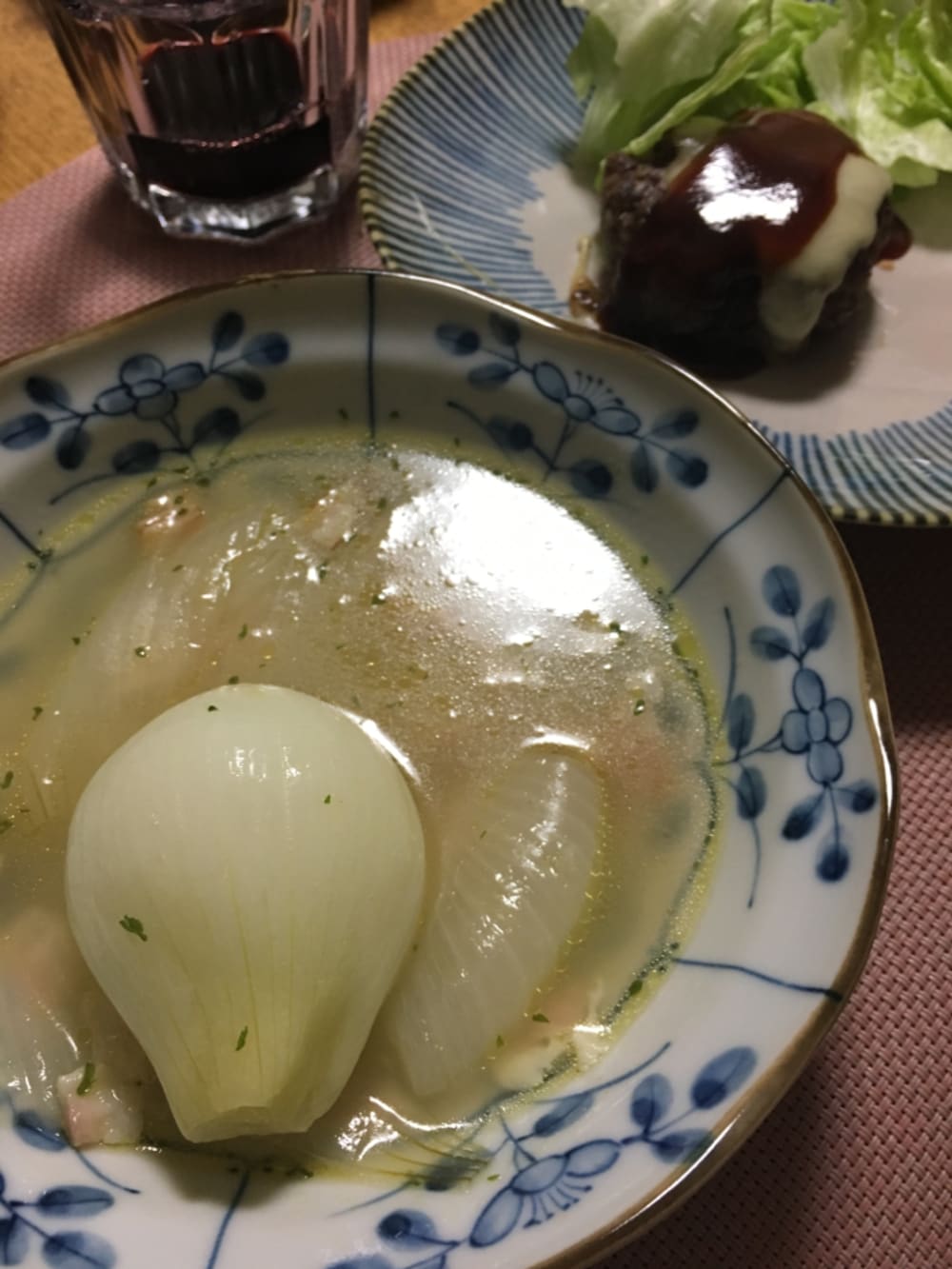 ベーコンとチーズとドライパセリ、パプリカを入れた池田さんの新玉ねぎでスープ作りました!神の味です!スープをあまり飲まない主人が、なんだ!このスープは!味がとてもいい!