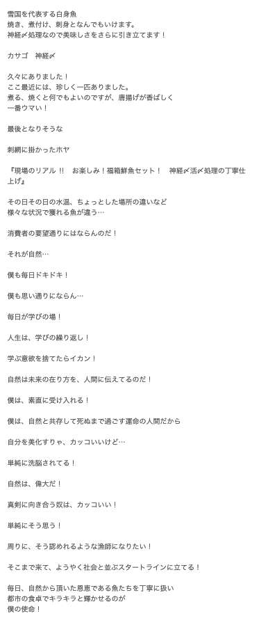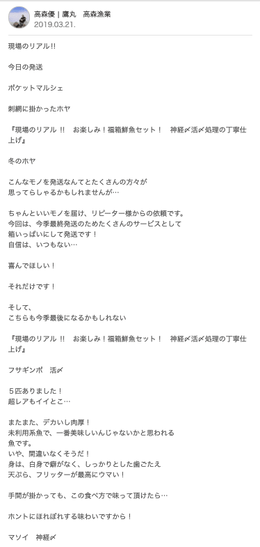 ——高森くんはよく現場の様子を投稿していますが、届く魚の背景を説明しようとしてるんですか?