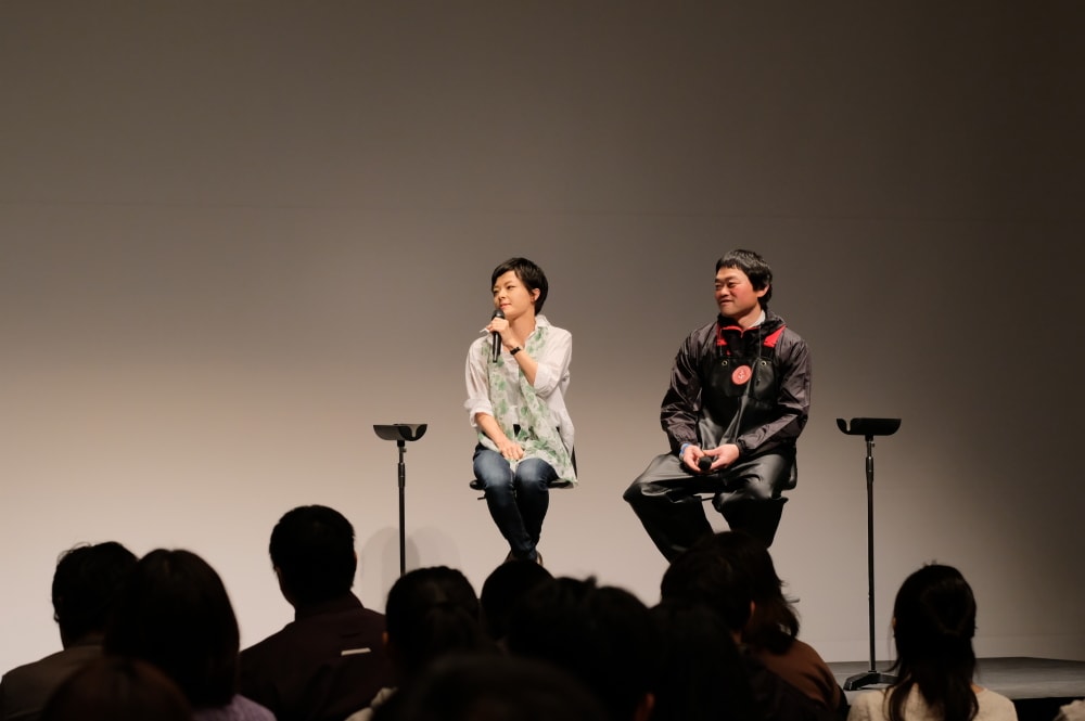 ここからが平成の百姓一揆の目玉企画。ポケマルの中で素敵なごにょごにょ関係を築き上げた作り手と食べ手のペア(以降、「ごにょブル」と呼びます)を壇上にお招きし、とことん語らってもらいます。題して、