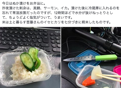 ぬか漬けとおいしいご飯さえあれば、立派なお弁当に。これからの季節は、冷たいぬか漬けをつまみながら仕事をするのもありだなぁ……。