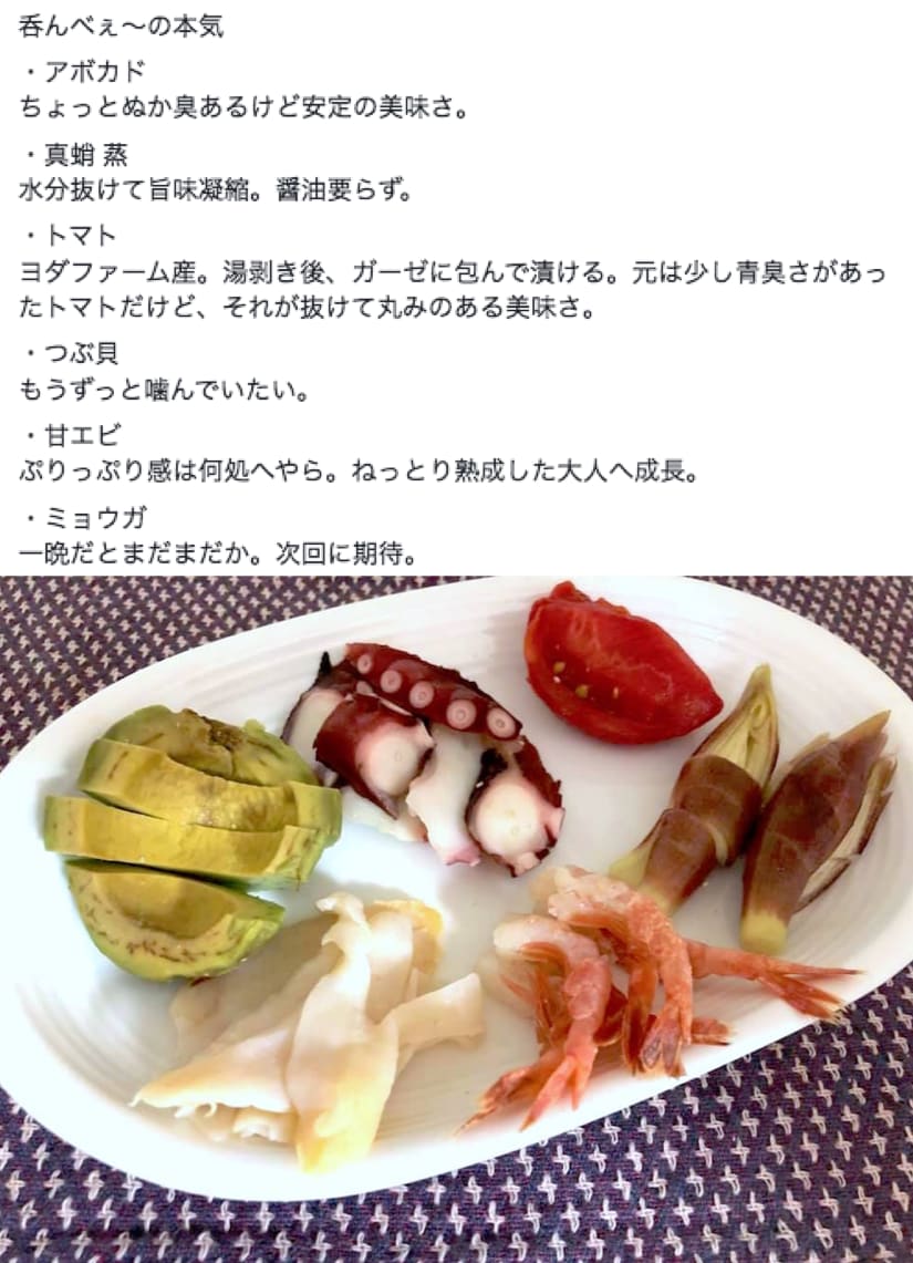 「ぬかえ」にきゅうりを、そして「ぬかよ」にはなんと刺身類を仕込んだようです。刺身とは、なかなかリスキーなことをしたようですが、仕上がりはどちらもおいしそうですね。