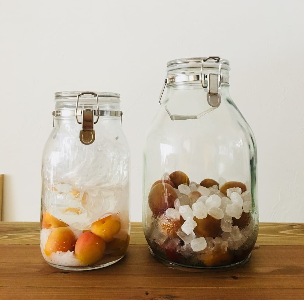 凍った梅と氷砂糖を合わせてそのまま置いておけば、生から作るよりも早く梅シロップになる。とっても便利だ。