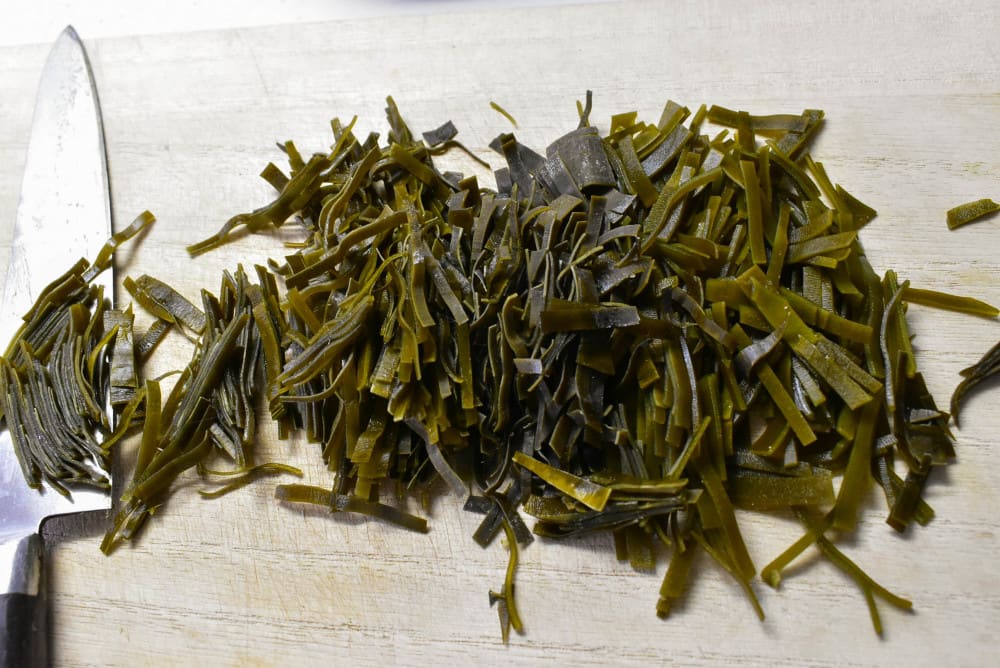 出汁を取ったあとの昆布や昆布〆に使った昆布を細切りにします。量はお好みで。具は昆布のみなので、たっぷりの量の方が美味しくできます。