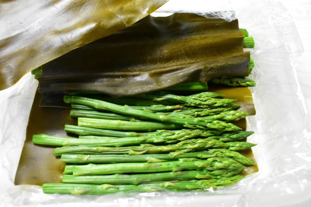 ひと晩寝かせると、とろっと昆布のトロミと旨みがアスパラに。