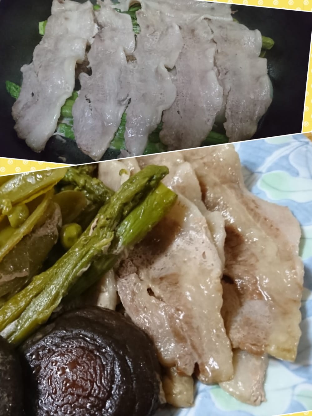 豚バラ肉は網の上で野菜と一緒にさっと焼いて、パクり。。