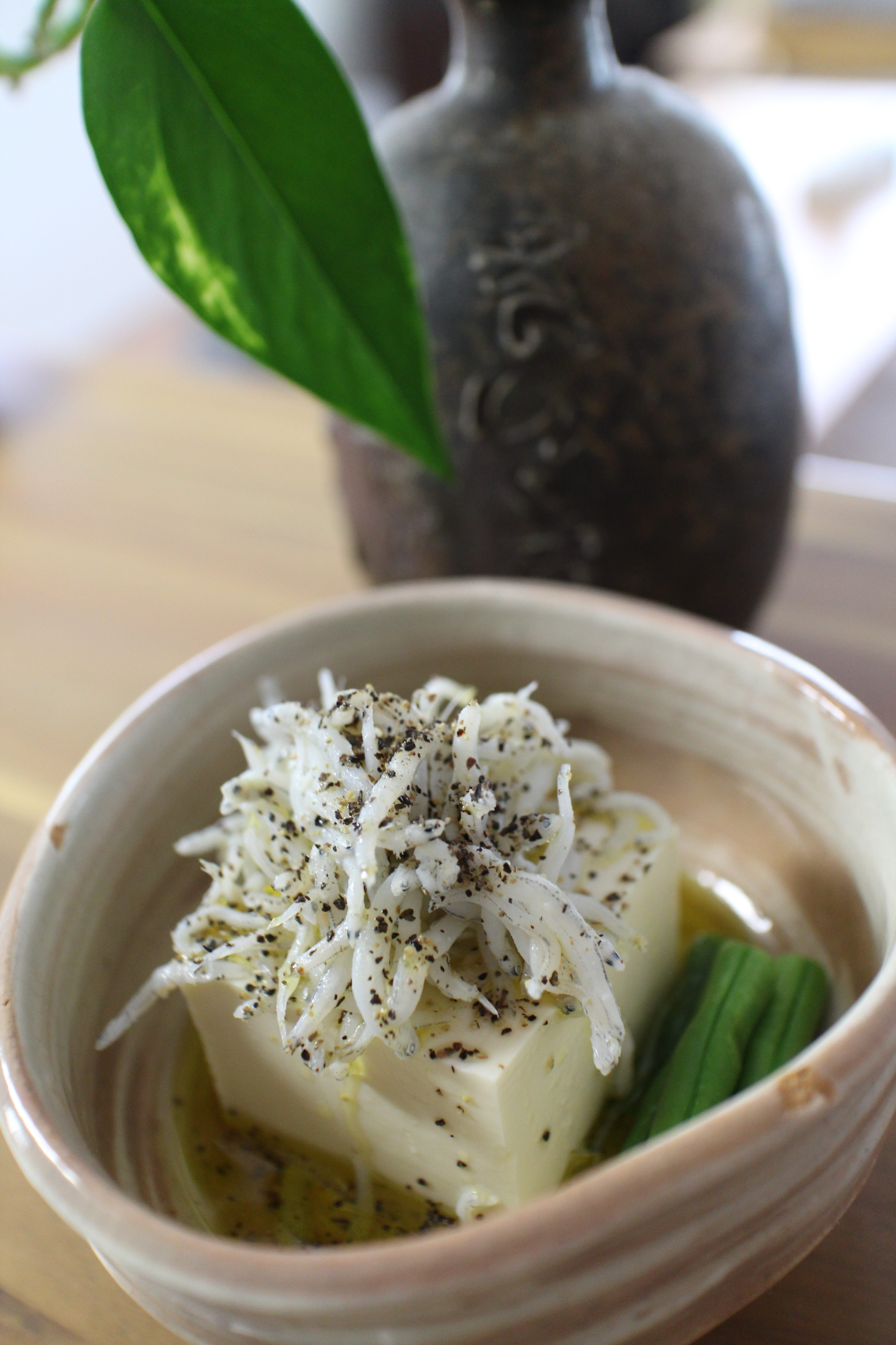 冷や奴にね、ちょちょいとしらすを乗せて、おめかしさせてあげたりね。小松菜のおひたしとか白身のお刺身とかも合うんじゃない?