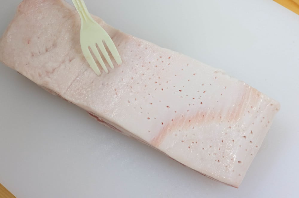 今回の主役はなんと言っても、茨城県・山西牧場さんの豚バラブロックです。見てください、この惚れ惚れする脂のりと重量感を。