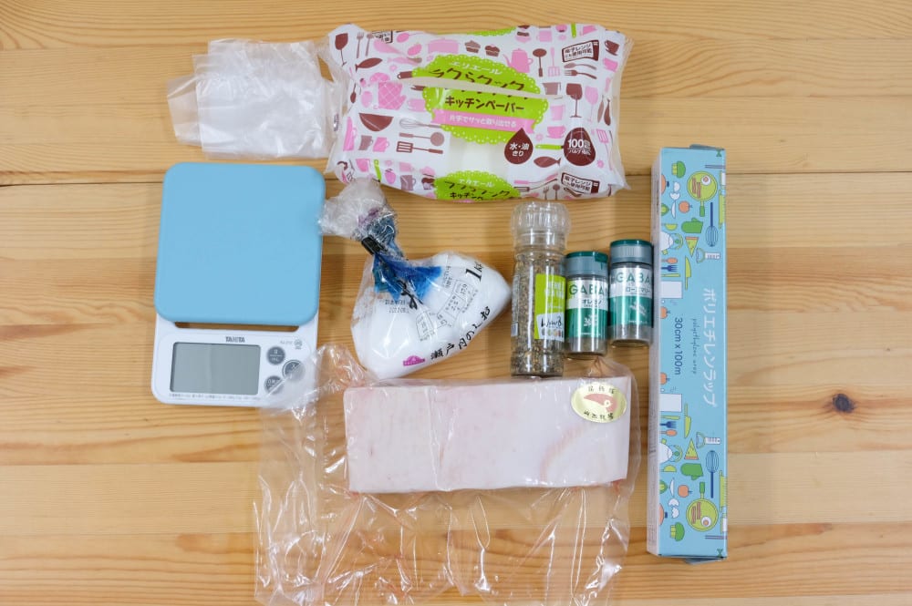 - 塩:豚バラブロックの重量の2〜10%(ここがミソ。後ほどじっくり説明します)