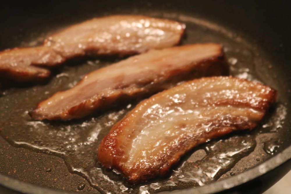 中火で加熱すること数分、じゅわじゅわと脂がしみ出してきました。