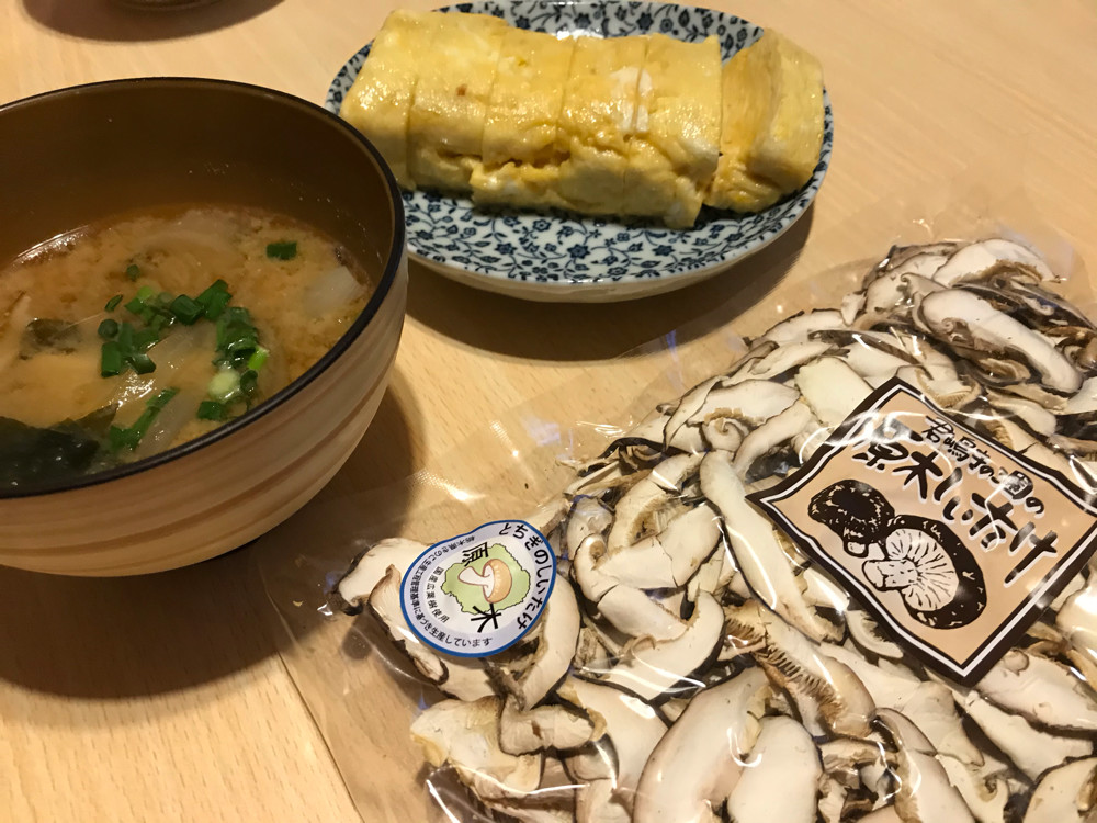 せめても美味しく料理がしたいと思い、今日はお味噌汁にそのままポンしました。もちろんお出汁は毎日ストックの椎茸出汁です。だし巻きにもたっぷりお出汁を使いました。本当にいい香りで、本当に幸せをもらえました。