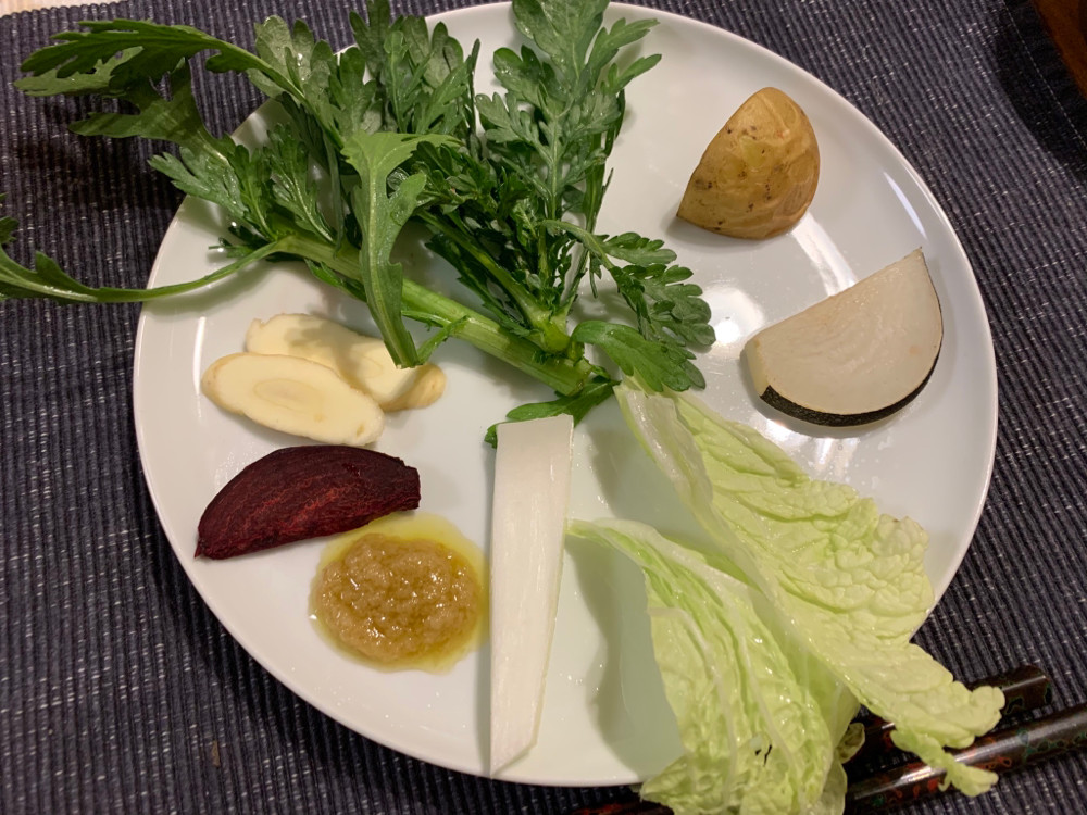 りょうすけさんから森山知也さんへのごちそうさま。固定種のお野菜たちを生のままムシャムシャ。生野菜にはついドレッシングをかけてしまいがちですが、良いお野菜にはシンプルな味付けがベストマッチですね! ありがとうございました♡