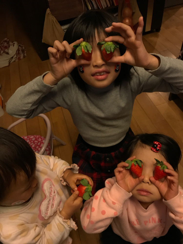 やくちゃんさんから吉田幸浩さんへのごちそうさま。お子さまたちのイチゴのお目目がかわいい一枚ですね。ごはんよりもいちごのほうが食べたい3号ちゃんの気持ち、よくわかります! 初ものいちごが届いた嬉しさが伝わって来ました。ありがとうございました♡