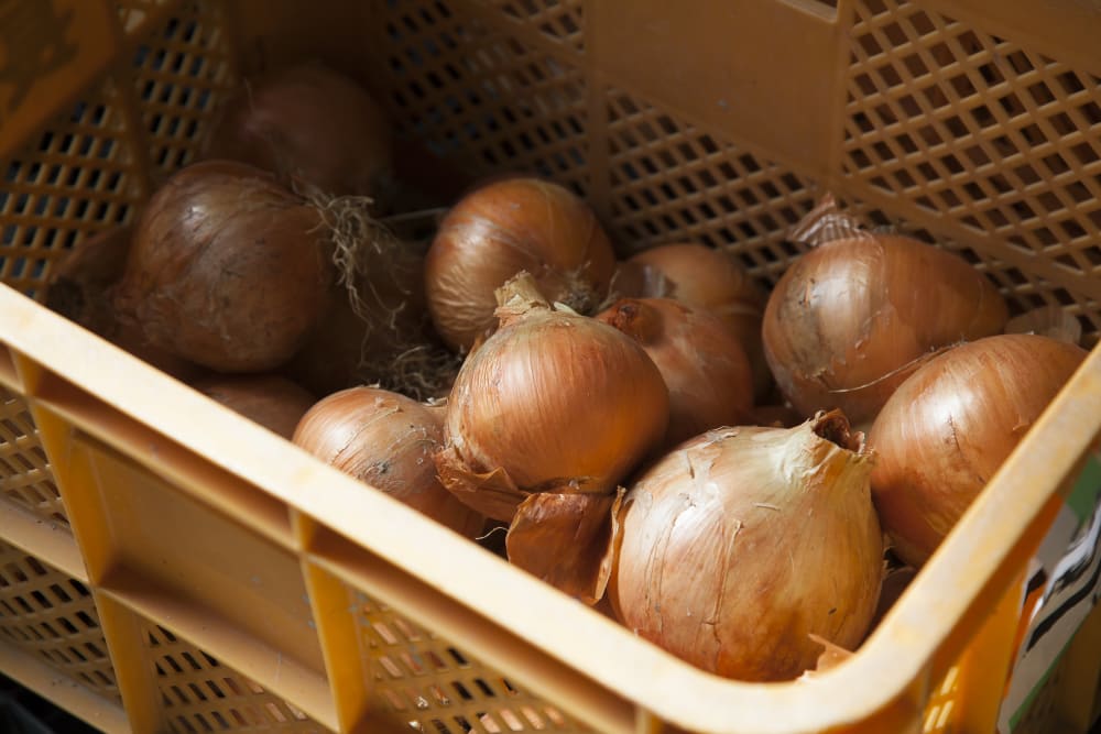 収穫されたばかりの玉ねぎ。甘味が強いのが特徴だという。