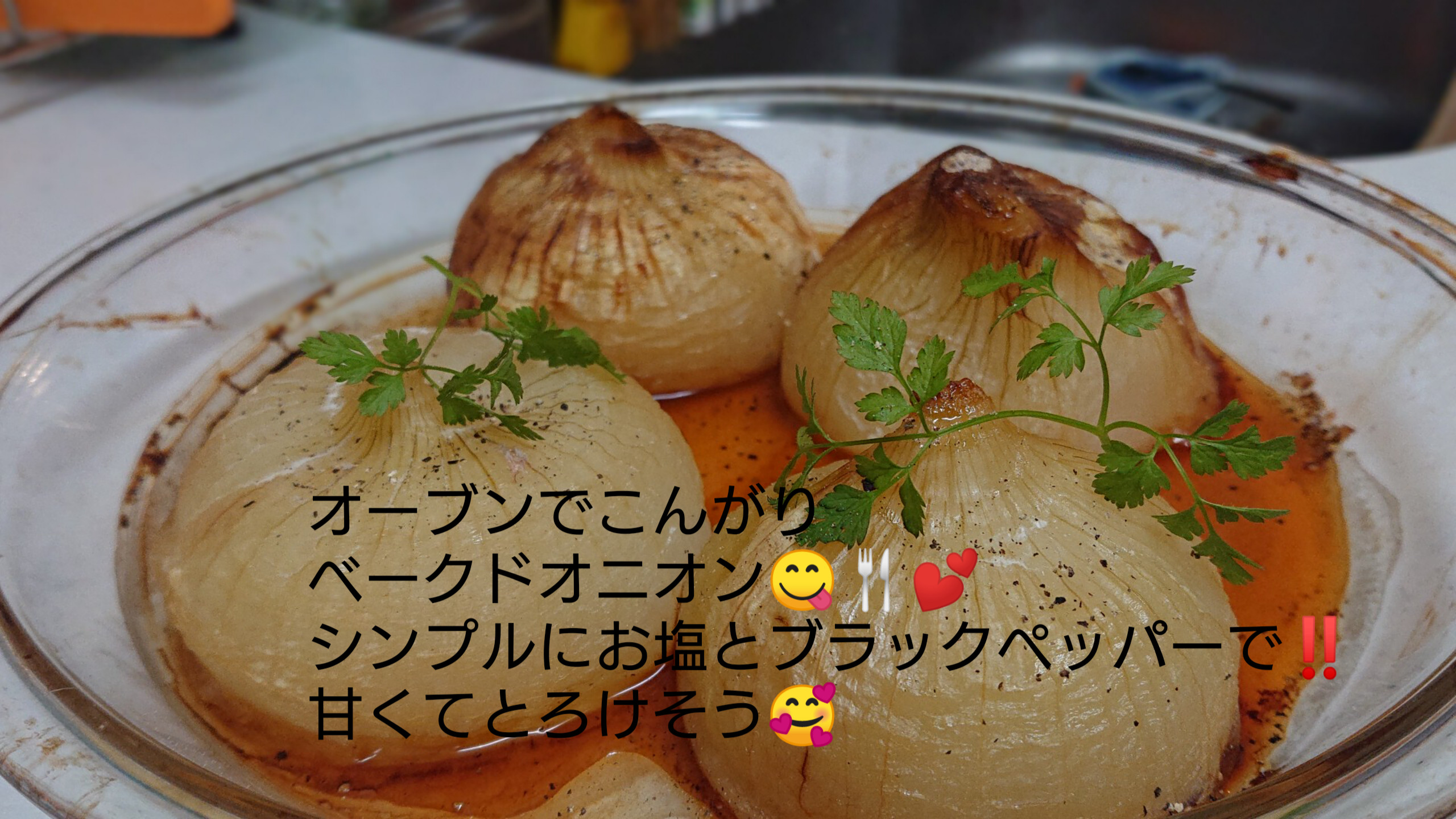 蒸したあと、更にオーブンでこんがりベークドオニオンにしました😋🍴💕甘くて、とろけて・・・・・たまりませんなぁ~~。素材が良いから、調味料はお塩‼️