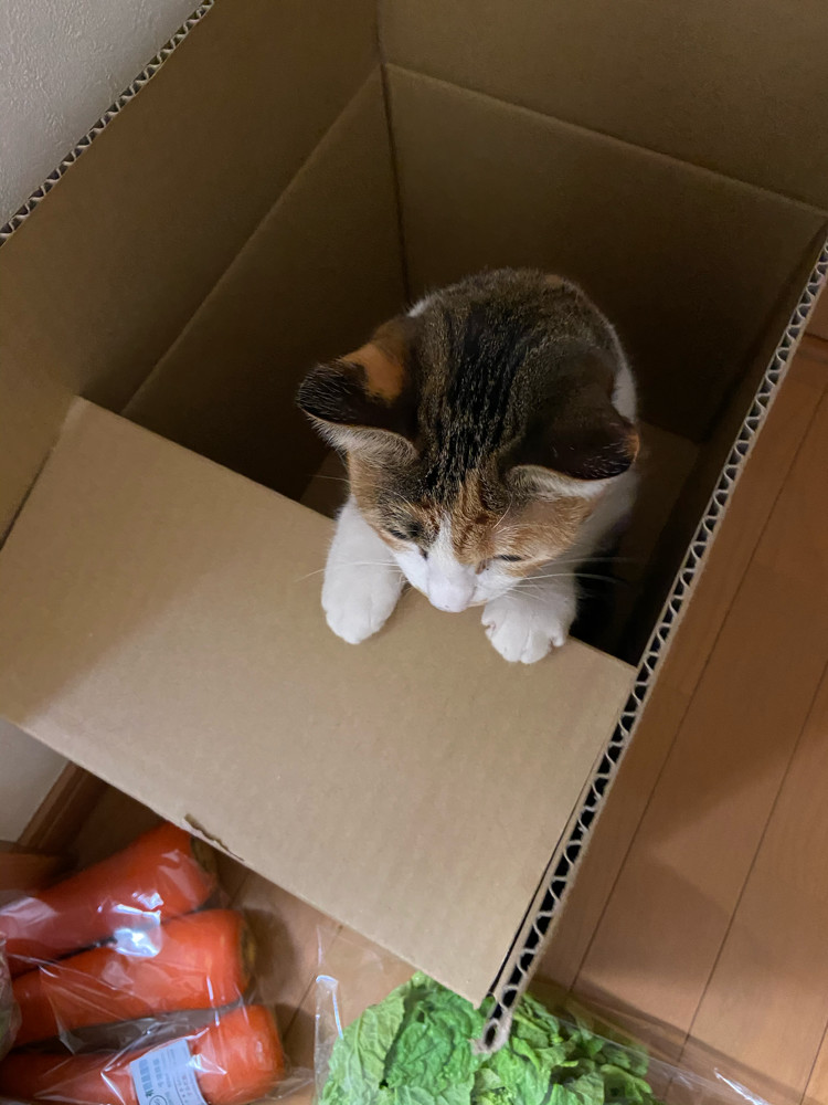 春に我が家にやってきた子猫が立派になり、先日の彩さんの牡蠣が入っていた発泡スチロールも伊藤さんのブロッコリーが入っていた段ボールも今回の大きな段ボールも…