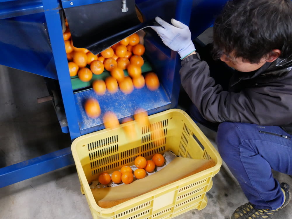 はい、でも先ほど採ったみかんをそのまま箱詰めできるわけではなく、選果という作業が待っています