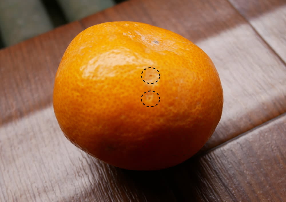 鳥がつついた跡なのか、小さな穴が