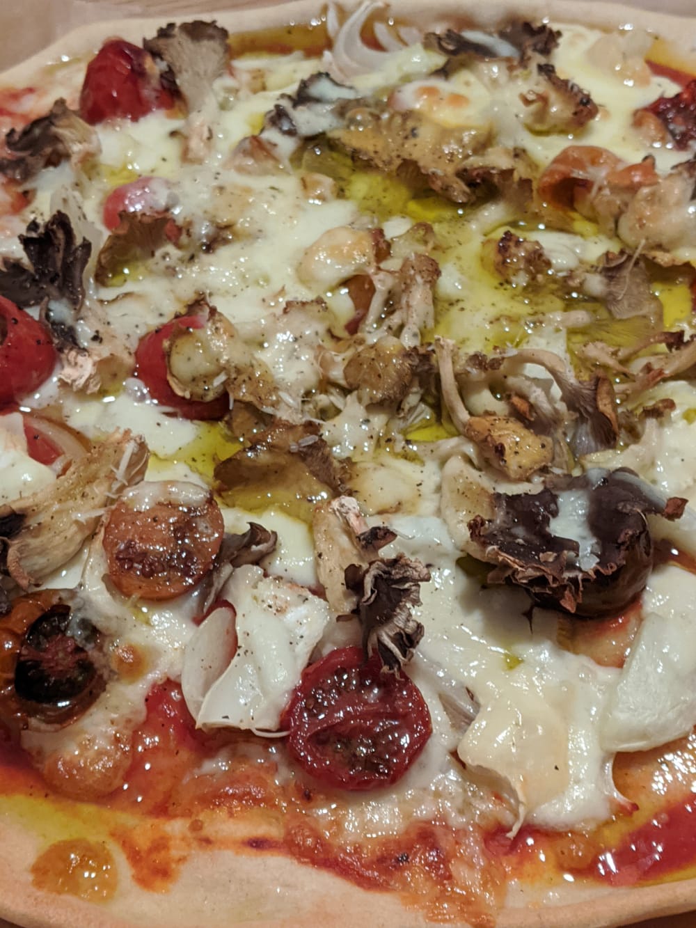 トマトときのことチーズだけのシンプルピザ。