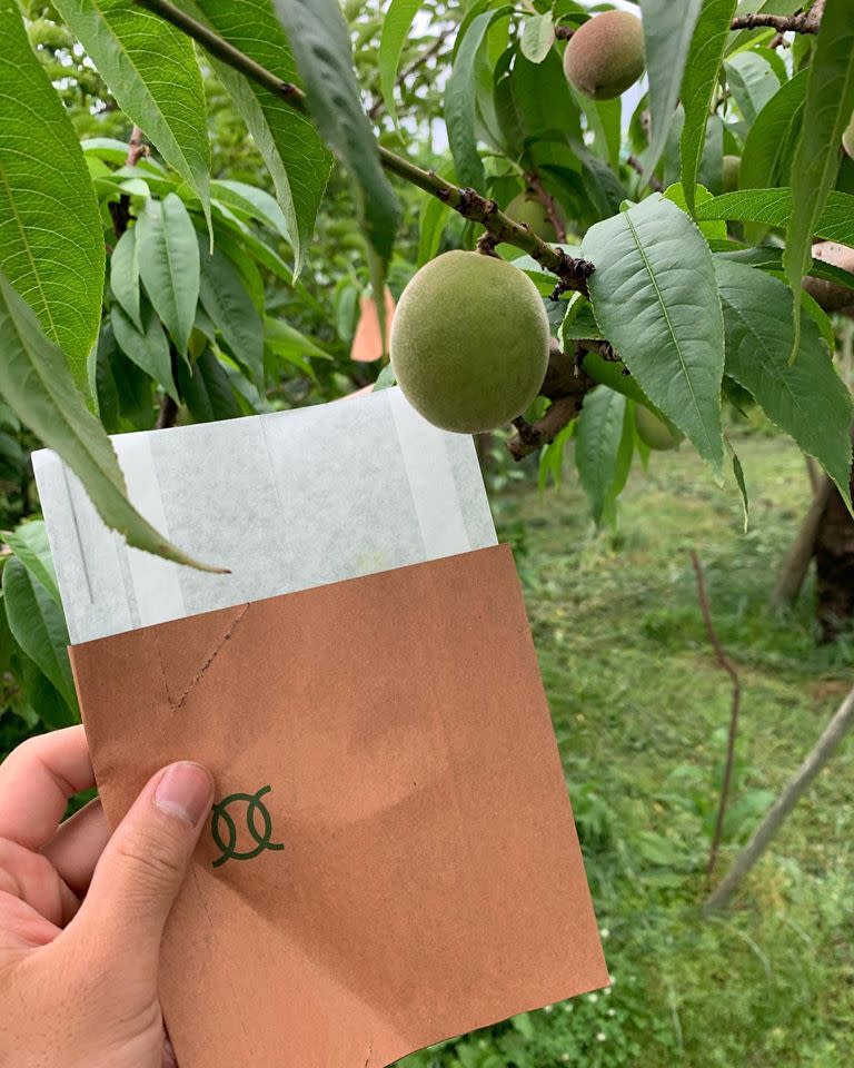 桃畑の様子はインスタで随時発信していますが、現在は袋掛けの真っ最中です。成長過程と共にもうしばらくお待ち下さいませ🤗