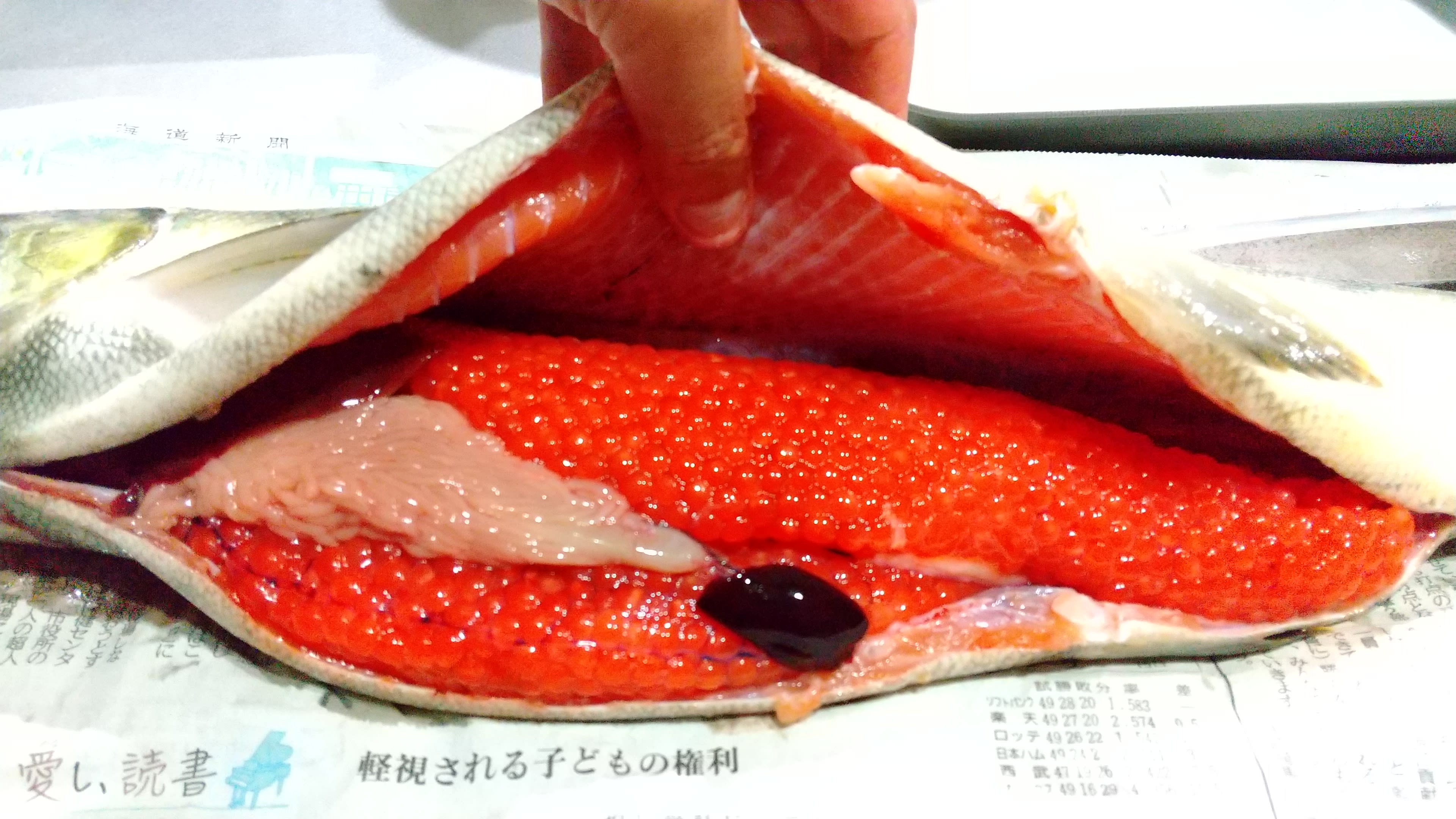2kgとは思えない程の大きな鮭には、沢山の筋子が入っていて嬉しかったです!