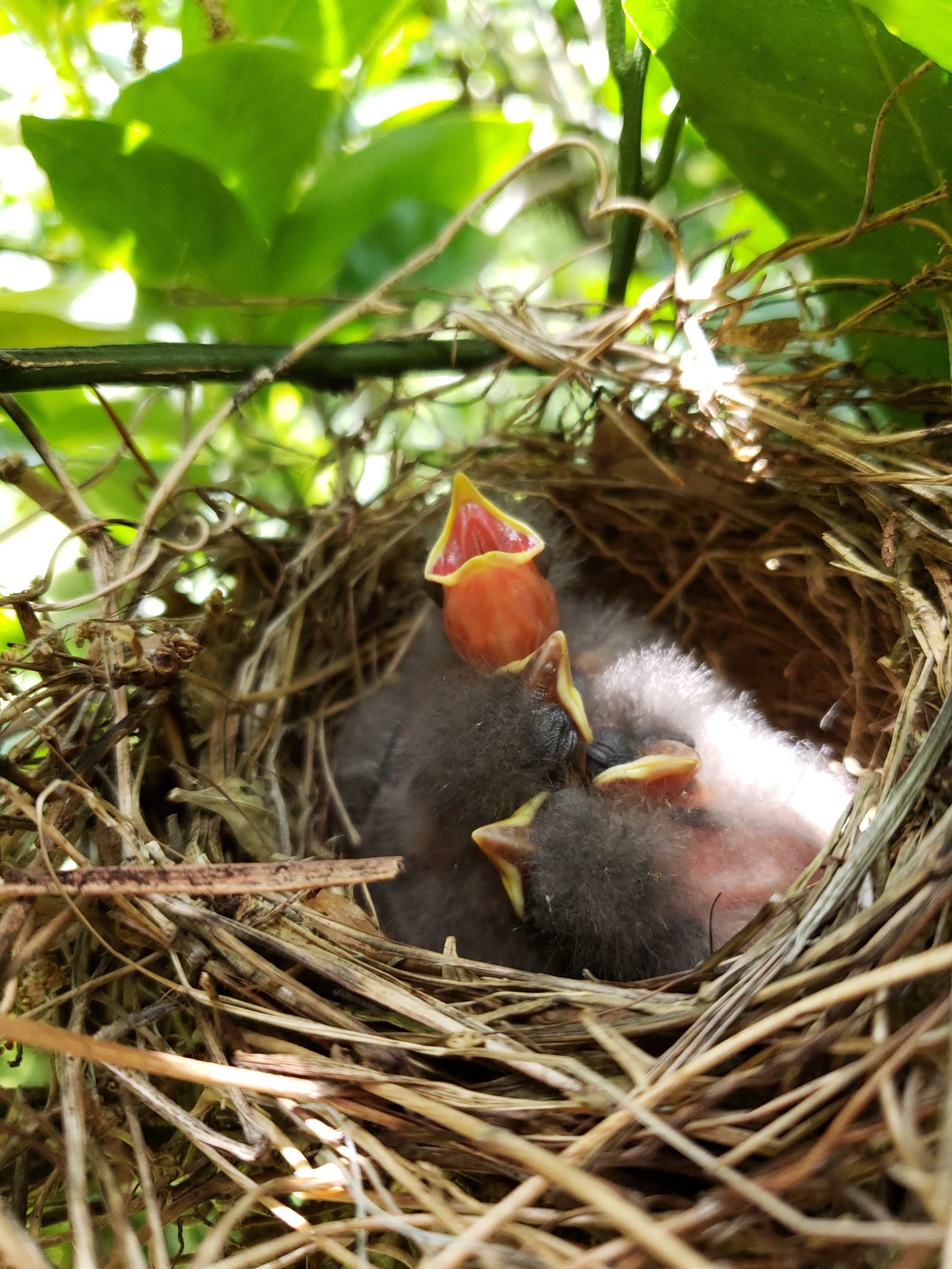 みかんの木を剪定していると、ひよどりが孵化していました❗