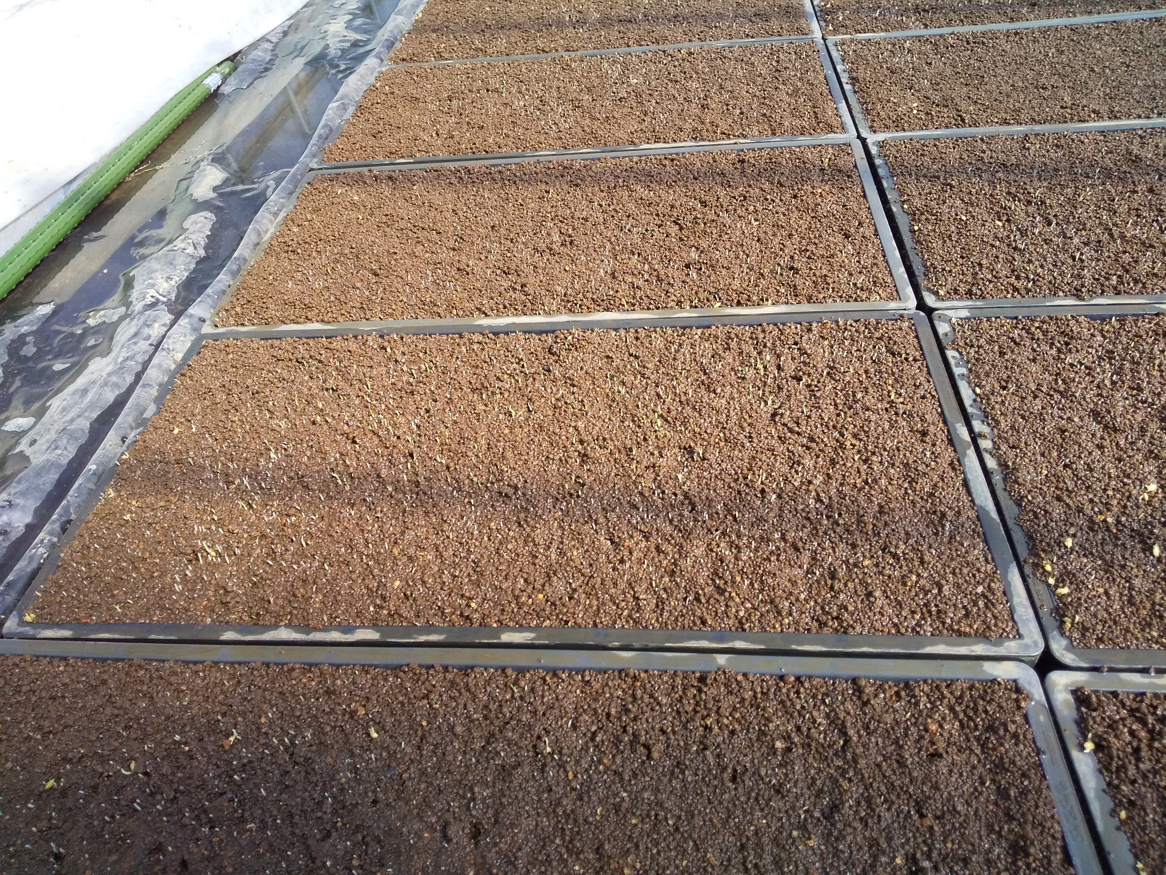 お米になる稲の苗が、芽出しはじまりました。赤ちゃんです。播種後5日。