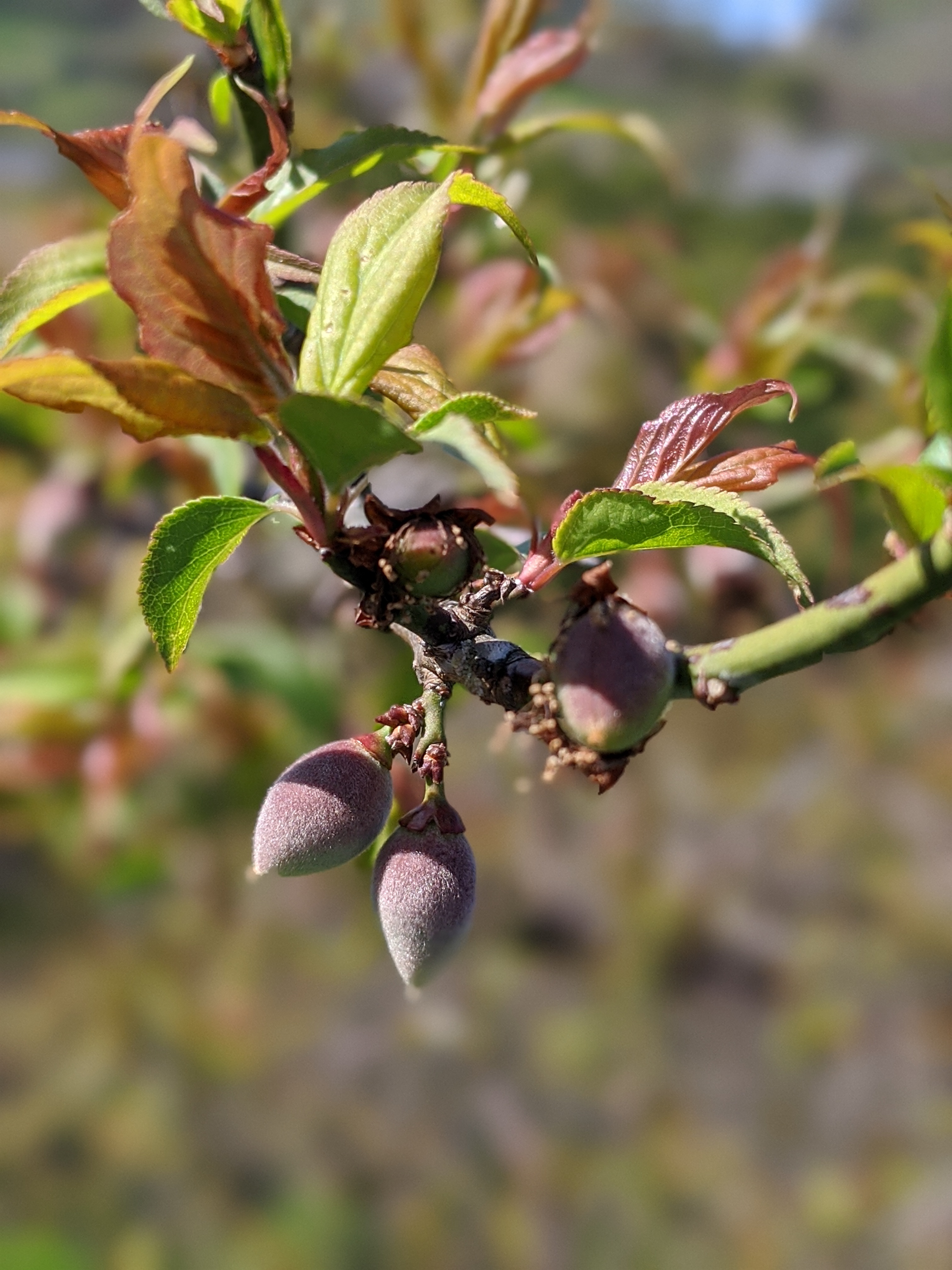 桃の花もだいぶ散りいよいよ、桃の赤ちゃんが👶真ん中にある米粒の様なのが桃ちゃんです🍑わくわくです♪