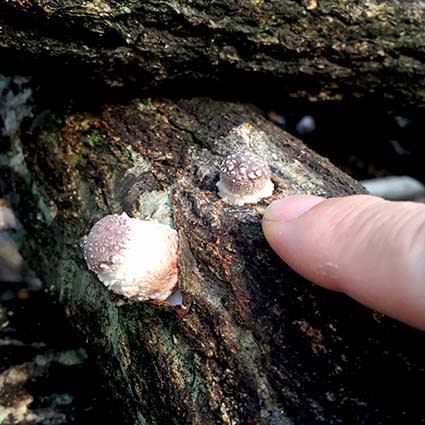 しいたけ赤ちゃん生まれております。これが育つまでにあと少し。冬はこれが収穫できるまで半月もかかったりしましたが、今は1日で大きさの違いがわかるほど。ぐんぐんぐんと生長しています。