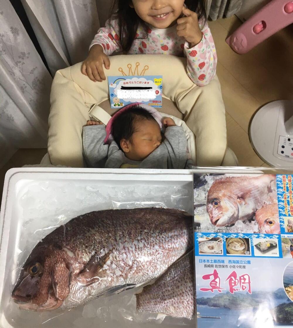 2人目のご出産を祝ったのは鳥羽さんの鯛! 生まれたばかりの赤ちゃんとほぼ同じサイズの鯛だったというから驚きです😁