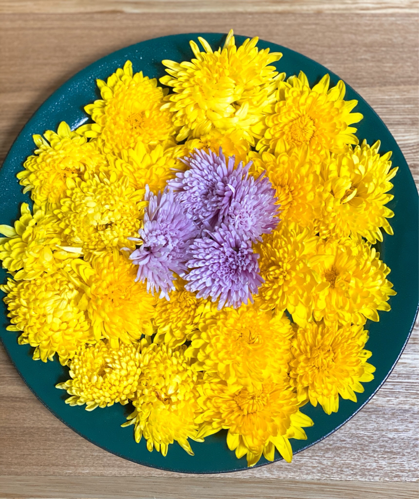 食用菊は高いお刺身のつまにちょこっと乗っている物だと思ったのにこんなにたくさん!!